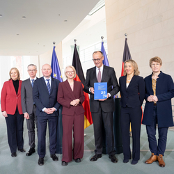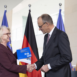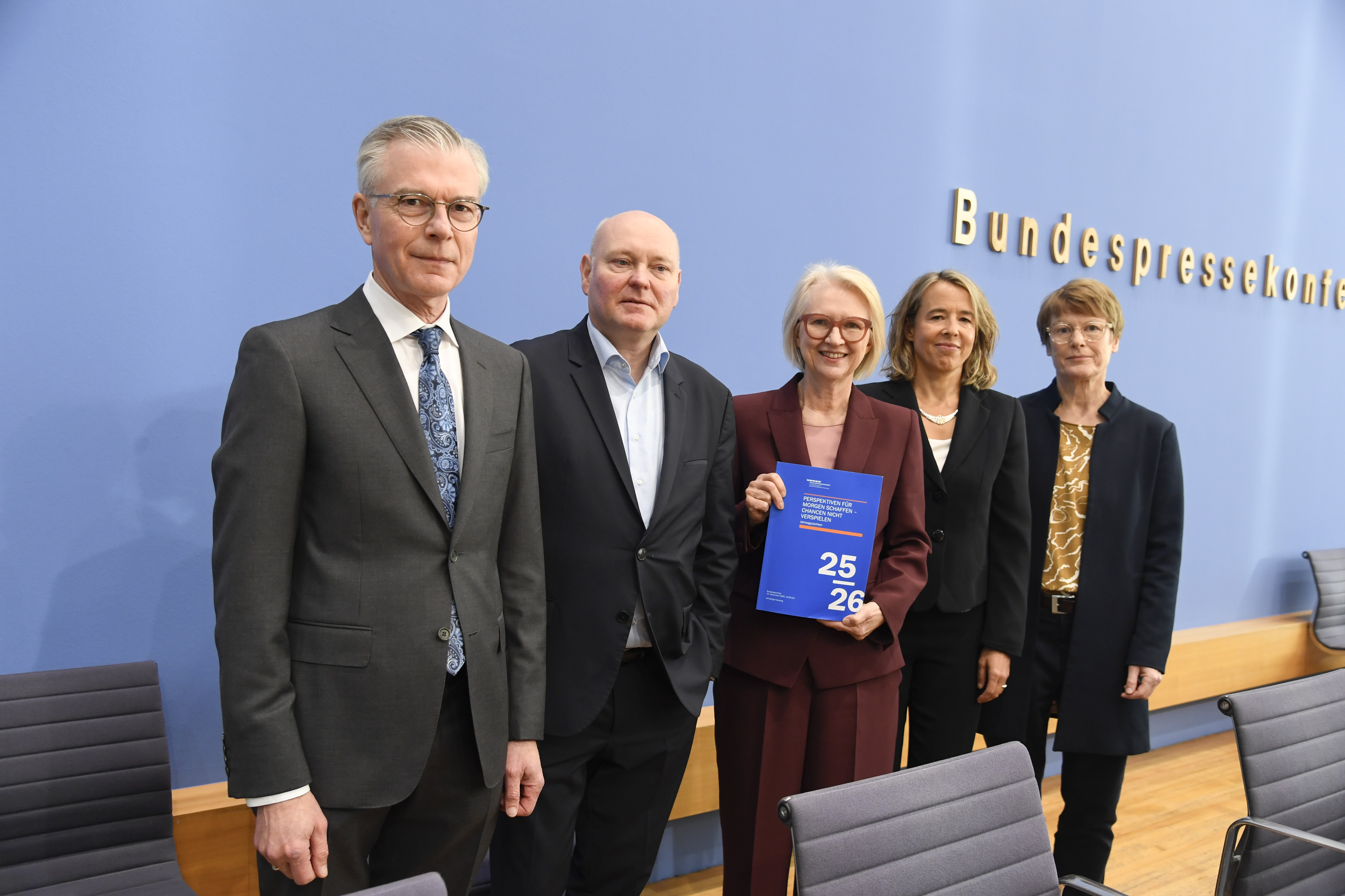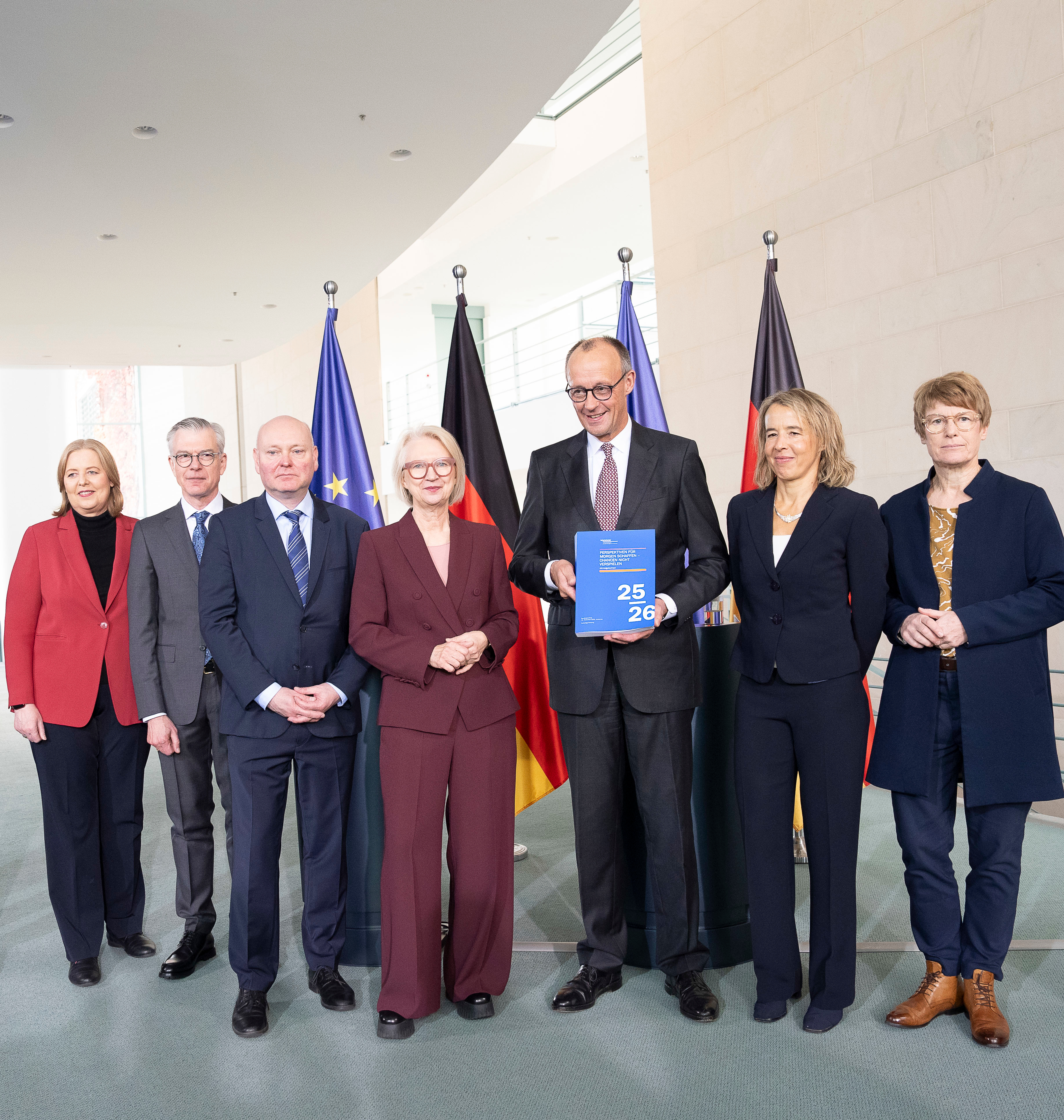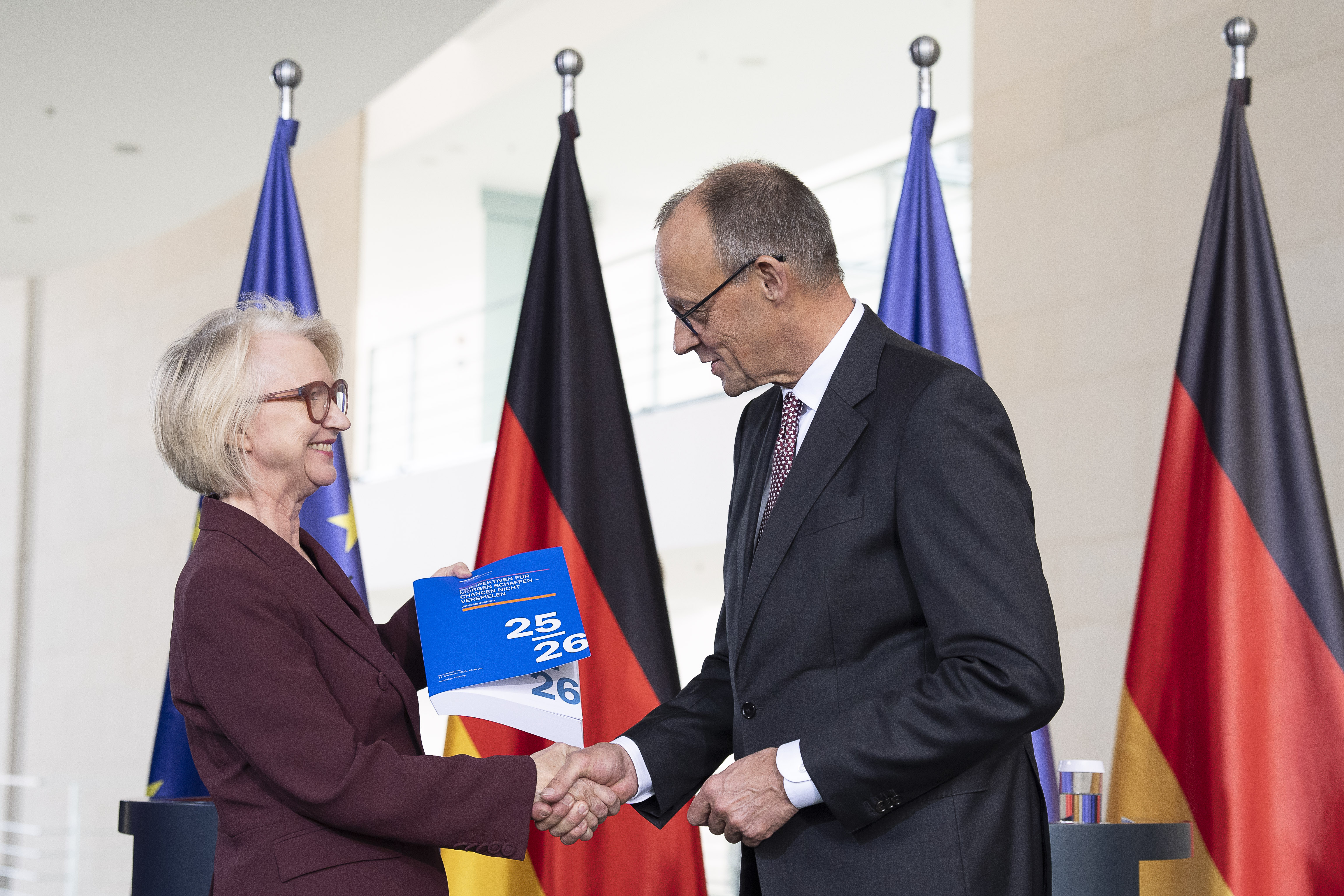 Pictures of the handover to the Federal Chancellor Friedrich Merz: © Bundesregierung / Steffen Kugler and from the Federal Press Conference: © Oliver Kern and © Jutta Prechtel.